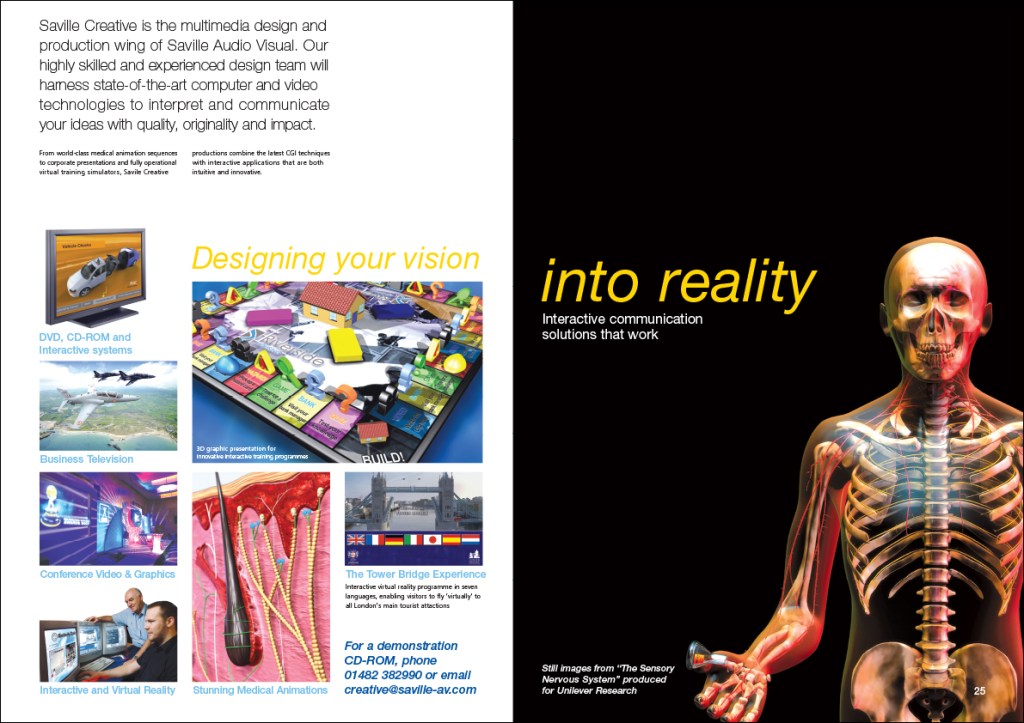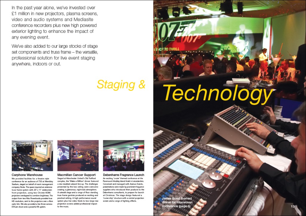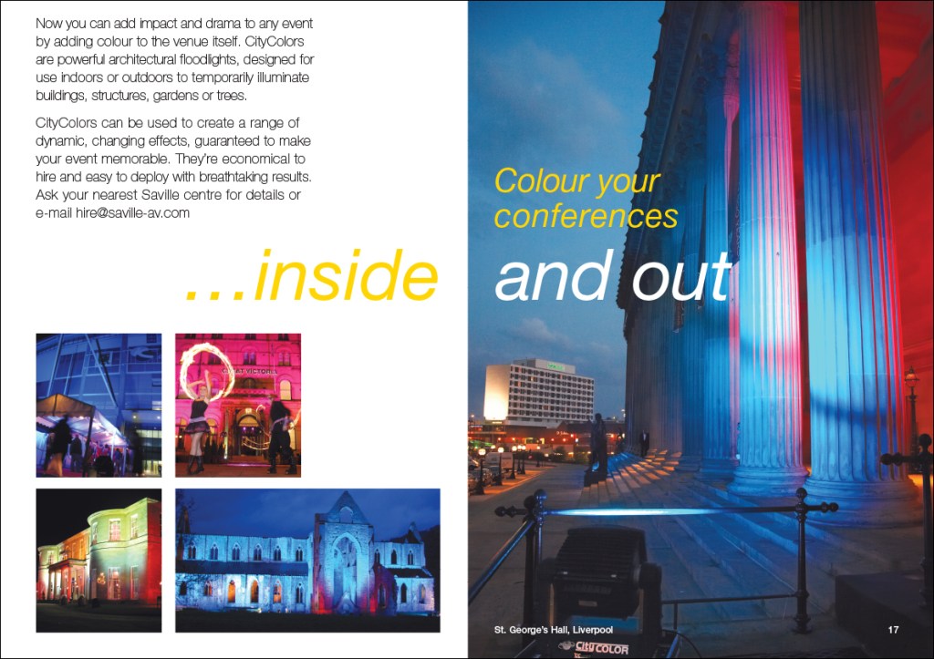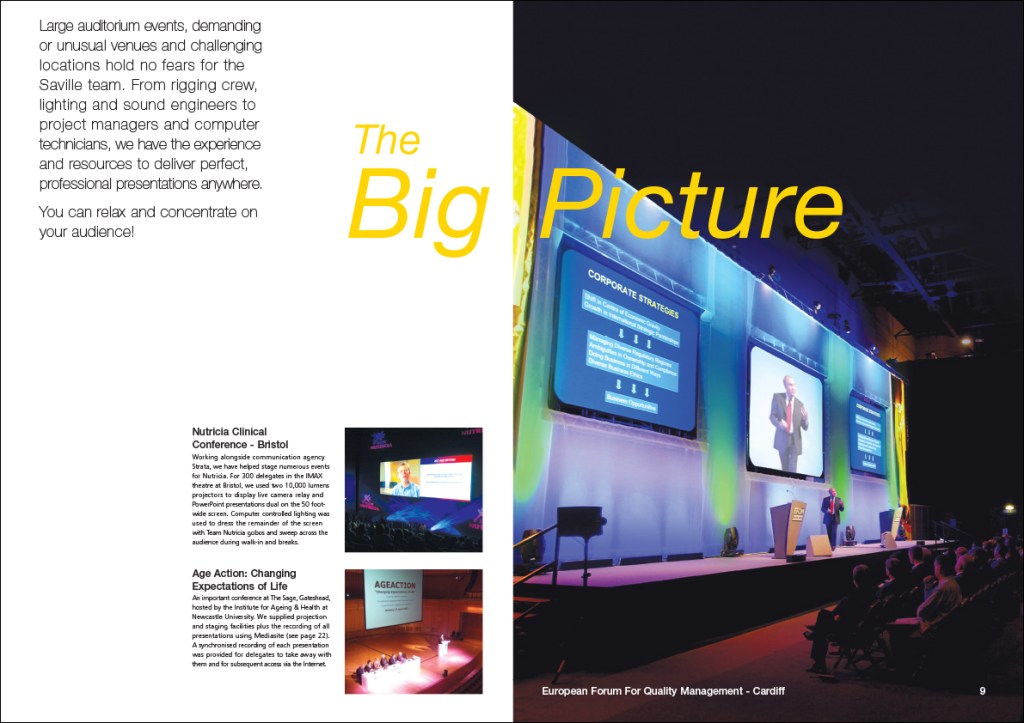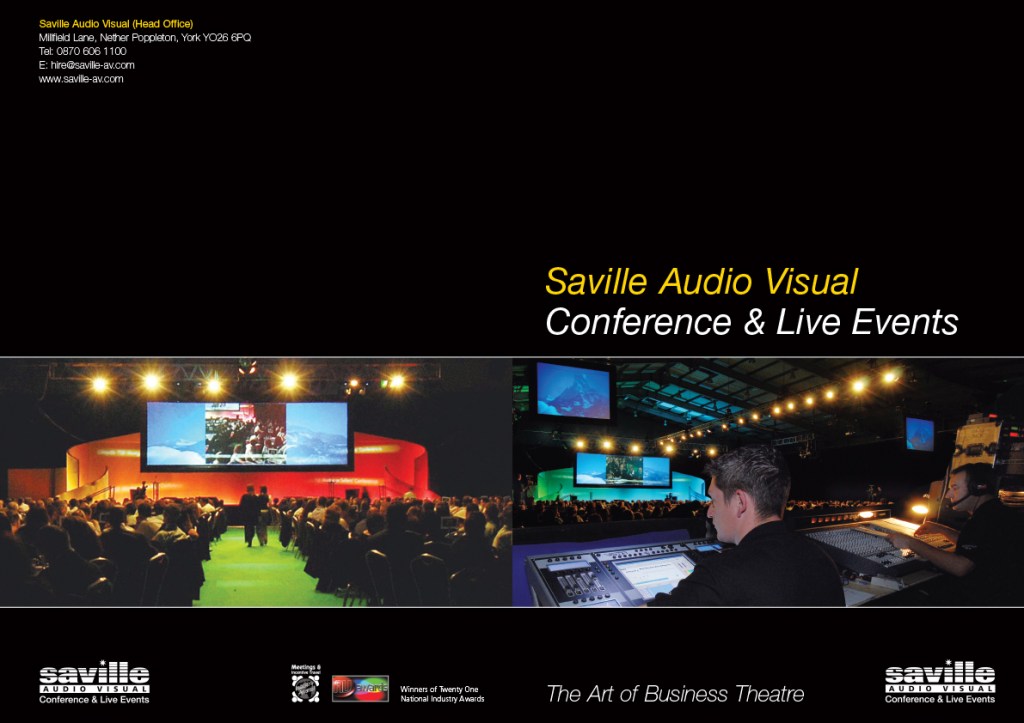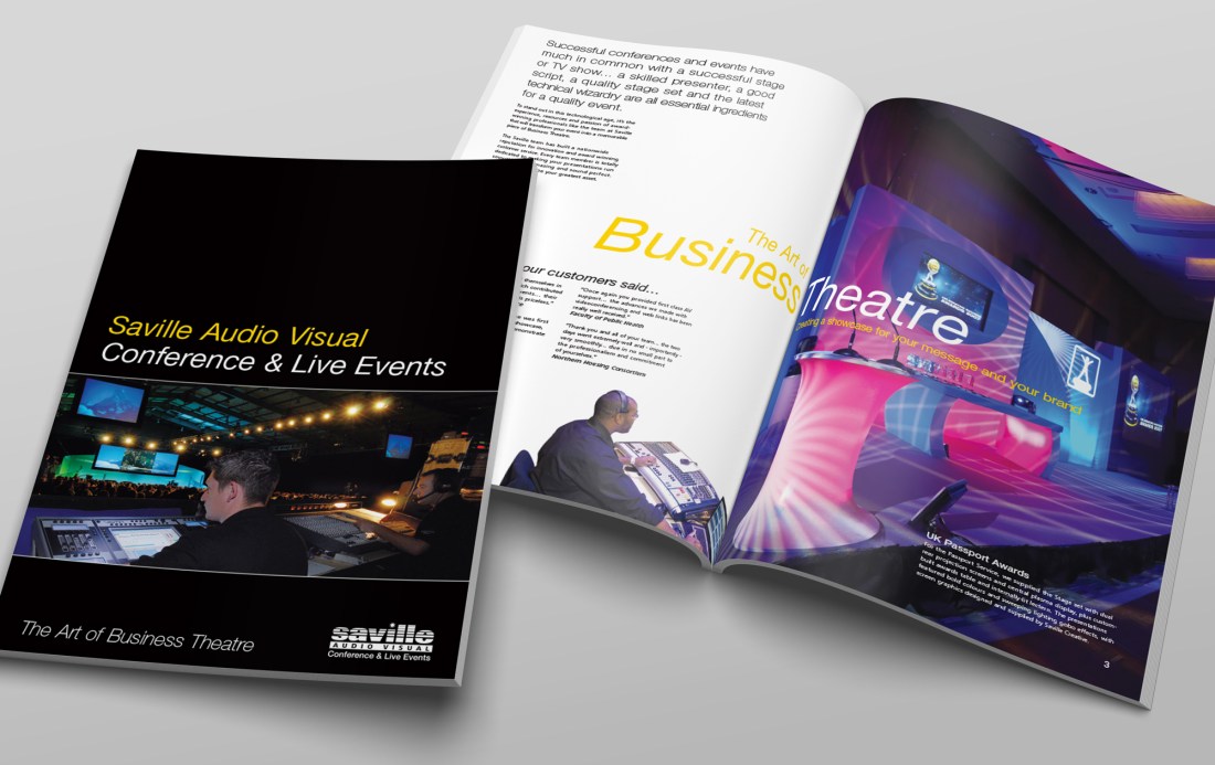 Saville Audio Visual were a multi-award winning AV company, and this was a glossy A4 brochure to promote their live event services to companies of all sizes, and projects of vastly ranging budgets.