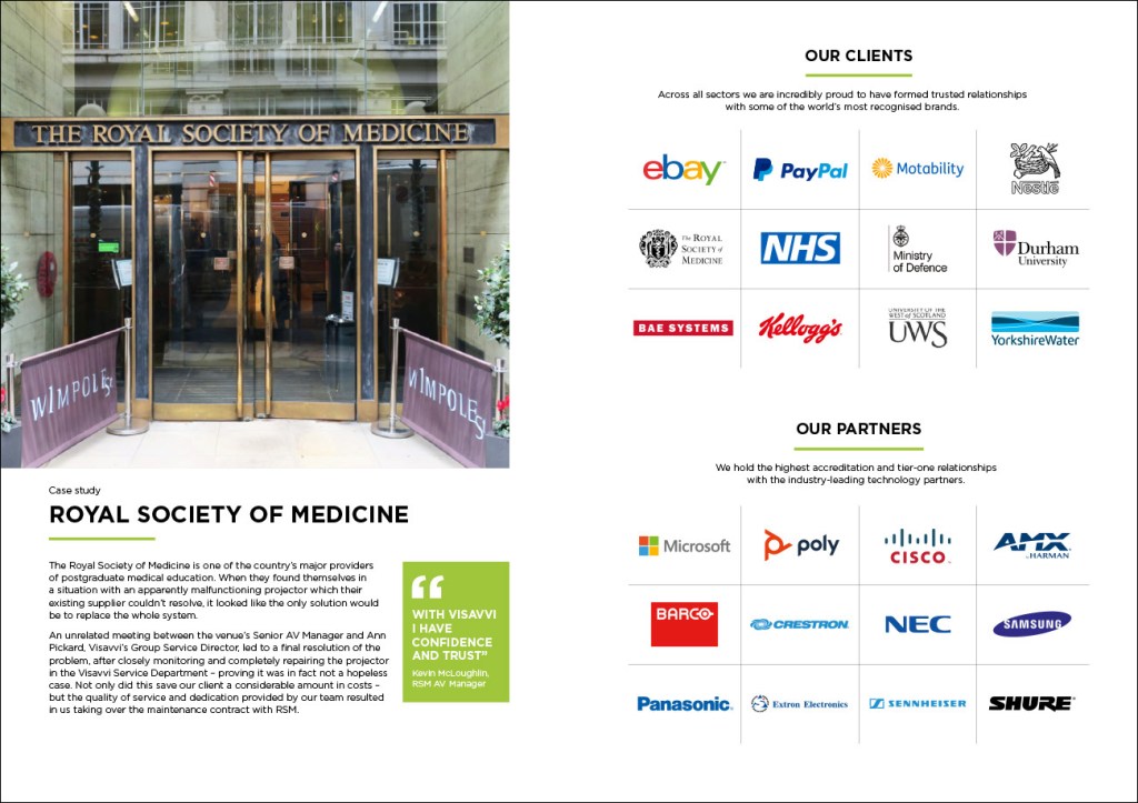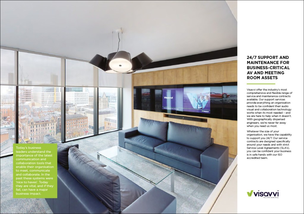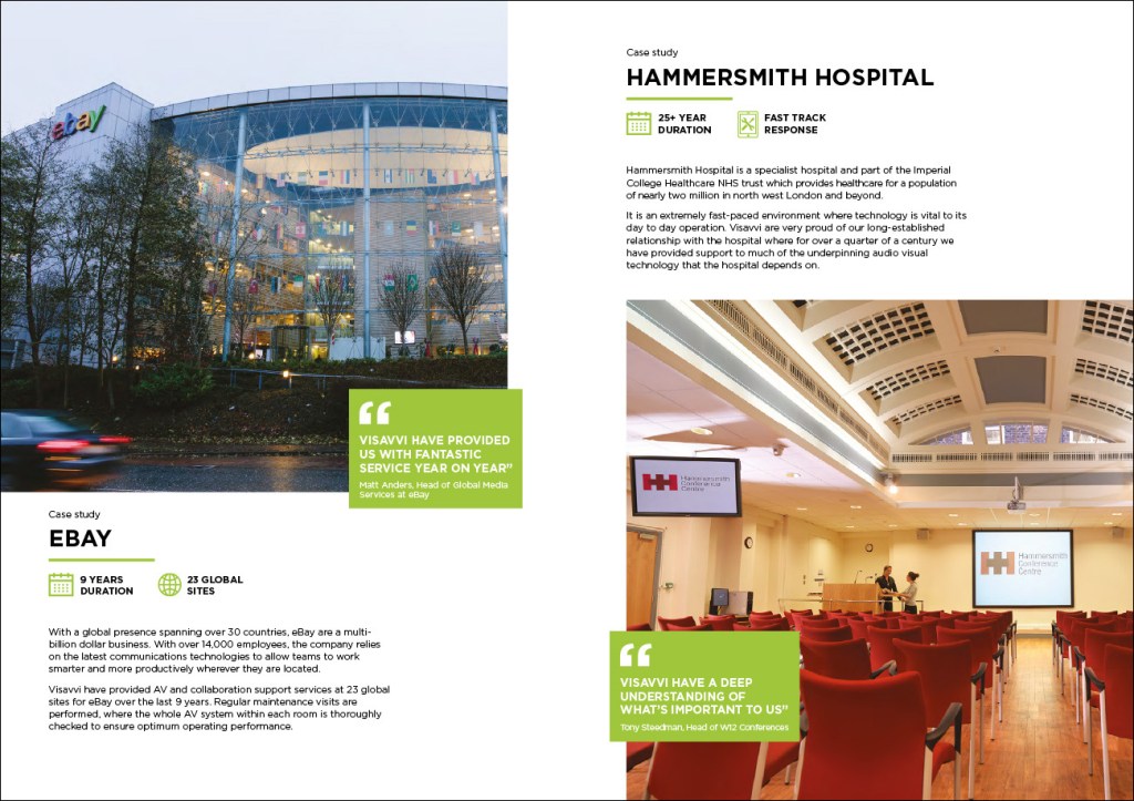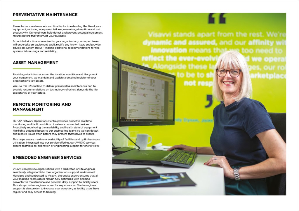 A print brochure for service and maintenance contracts available from an audio visual company. The brief was for a modern look with a human touch whilst utilising and progressing the company’s corporate identity shortly after a rebrand.