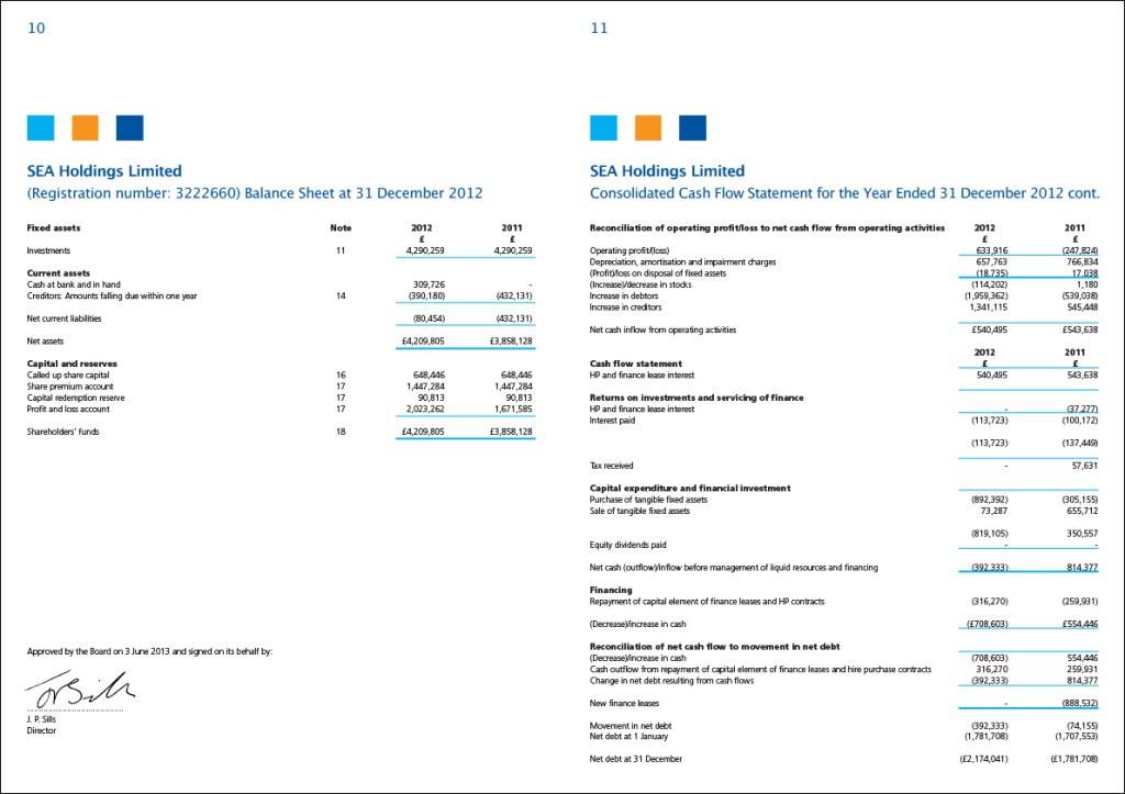 For twelve years, I designed the annual company Report & Accounts document for SEA Holdings, the parent company of my employer.