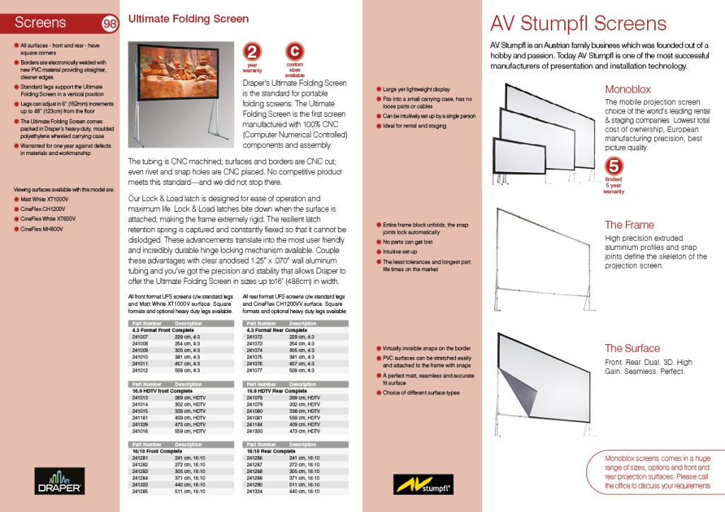 Between 2012 and 2020, I produced a series of technical product catalogues for Audio Visual Material (AVM), one of the country’s leading audio visual distribution companies.